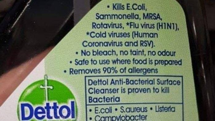 Virus Covid-19 merupakan virus yang media penyebarannya adalah melalui droplet atau cairan dari tubuh penderita, bukan melalui udaramaka dari itu, penggunaan Dettol antiseptik cair sebagai isian air humidifier pun tidak efektif karena virus yang menjadi sasarannya tidak terdapat di udara.