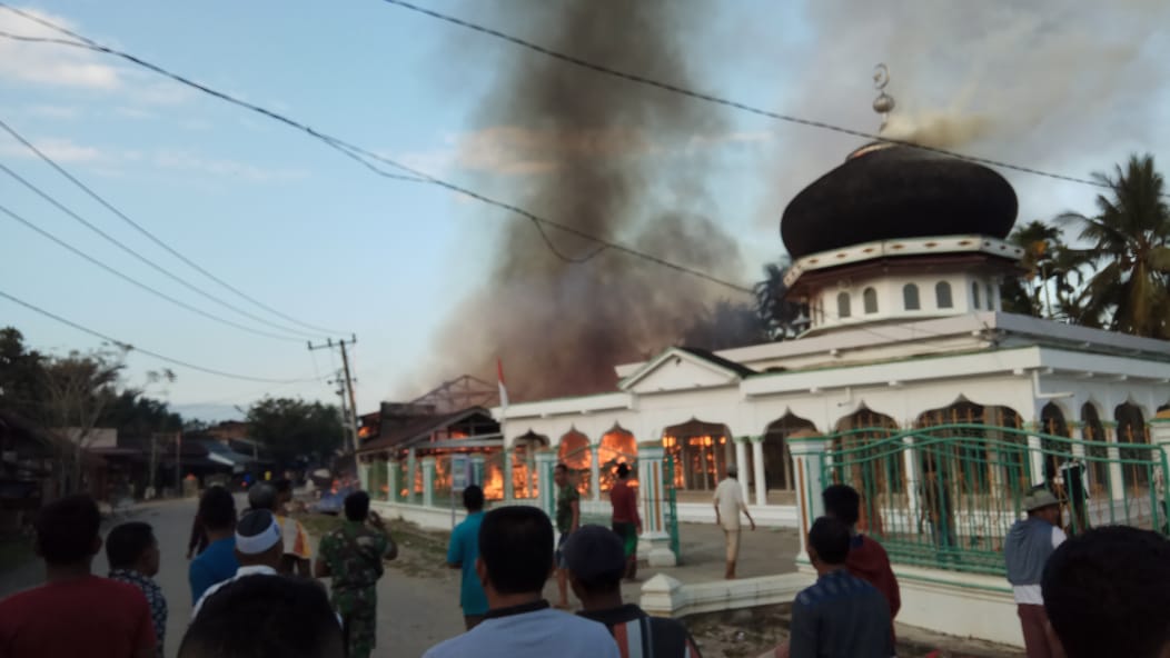 Dikarenakan api sudah membesar, lanjut Bambang, api menyambar ke menara Masjid Taqrrub Gampong setempat.