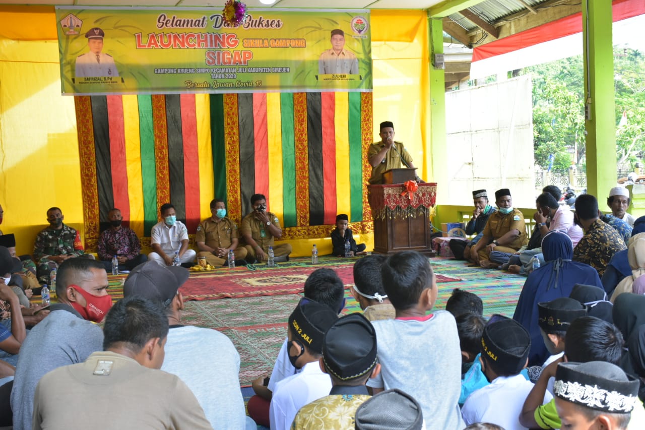 Dalam sambutannya, Keuchik Krueng Simpo Safrizal, S.Pd menjelaskan bahwa program SIGAP itu merupakan bentuk inovasi di bidang pendidikan yang lahir karena latar belakang liburnya sekolah selama masa pandemi Covid-19 dan akan menjadi terobosan jangka panjang serta berkelanjutan.