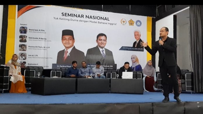 ANALISAACEH.COM, BANDA ACEH | Sejumlah inspirator muda Aceh berbagi pengetahuan dan pengalaman di acara Seminar Nasional plus talkshow inspiratif yang dilaksanakan oleh English Student Association (ESA) Universitas Syiah di Aula lantai 3 FKIP Unsyiah pada Jumat, (13/12/2019)
