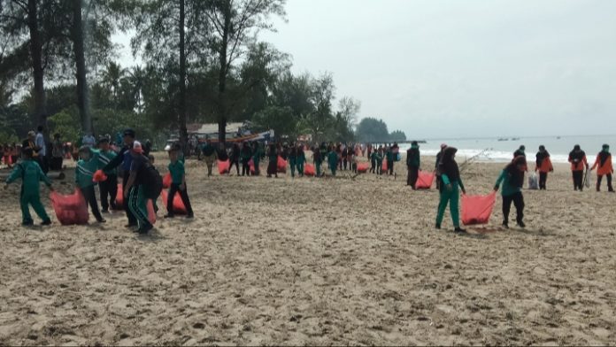 Analisaaceh.com, Blangpidie | Seribuan relawan yang tergabung dari berbagai komunitas membersihkan beberapa objek wisata seperti Pantai Jilbab, Ujong Seuranga Kecamatan Susoh, Kabupaten Aceh Barat Daya (Abdya) dalam rangka memperingati hari kebersihan sedunia. Sabtu, (21/9/2019).