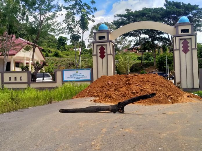Analisaaceh.com, Blangpidie | Jalan masuk ke Kantor Cabang Dinas Pendidikan (Kacabdin) Aceh wilayah Kabupaten Aceh Barat Daya (Abdya) diblokir oleh orang tidak dikenal (OTK) pada Selasa (16/11/2021).