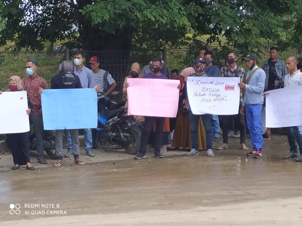 JASA gelar demo di depan pintu A2 PT PIM kawasan Krueng Geukuh , Rabu (11/11)