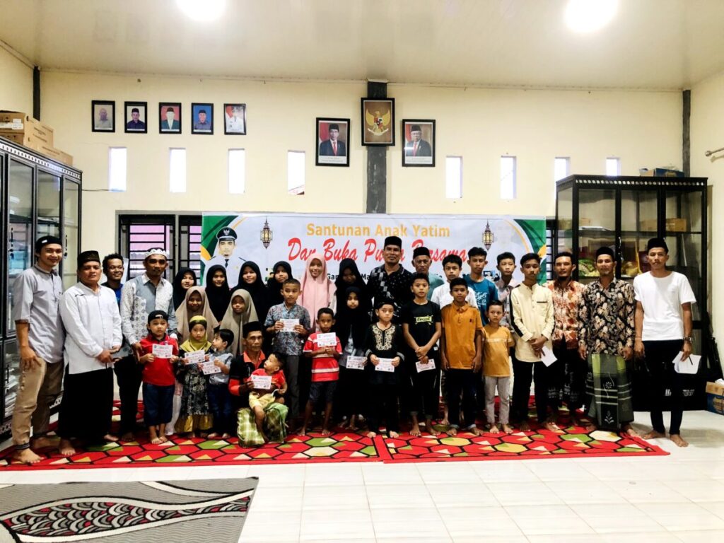 Kegiatan santunan dan buka puasa bersama (Bukber) masyarakat dan anak yatim-piatu tersebut berlangsung di kantor gampong setempat.