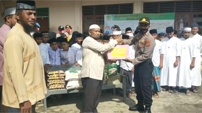 Analisaaceh.com, Meureudu | Kepala Polisi Sektor (Kspolsek) Kecamatan Meureudu, Pidie Jaya Ipda Muhammad Yunus, SH beserta jajaran menyambangi Yayasan Darul Aitam Meureudu untuk memberikan bantuan sosial, Sabtu,(23/05/2020).