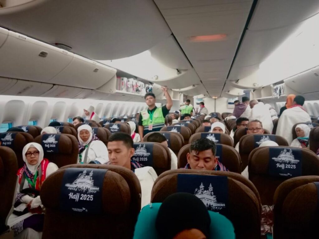 Sebelumnya, pesawat Garuda Indonesia yang membawa jemaah kloter ini lepas landas di Bandara Sultan Iskandar Muda (SIM) Aceh Besar, Minggu (18/5/2025) sekitar pukul 07.31 WIB.