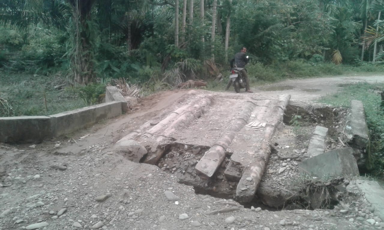 Akibat amblasnya jembatan berupa gorong-gorong dengan pohon kelapa itu menyebabkan kendaraan roda empat tidak bisa melintasi jalan yang menghubungkan antara dua Kecamatan tersebut.