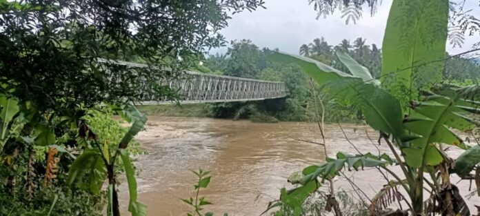 “Ambruknya tiang penyangga jembatan itu diakibatkan curah hujan yang tinggi, sehingga terputus dan terbawa arus sungai,” ujarnya.