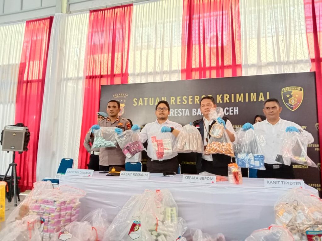 “Pengungkapan kasus berawal dari adanya informasi dari pihak BPOM Aceh, dimana petugas melakukan patroli siber terkait dengan maraknya peredaran kosmetik dan obat-obatan yang tak sesuai ketentuan,” ujarnya.