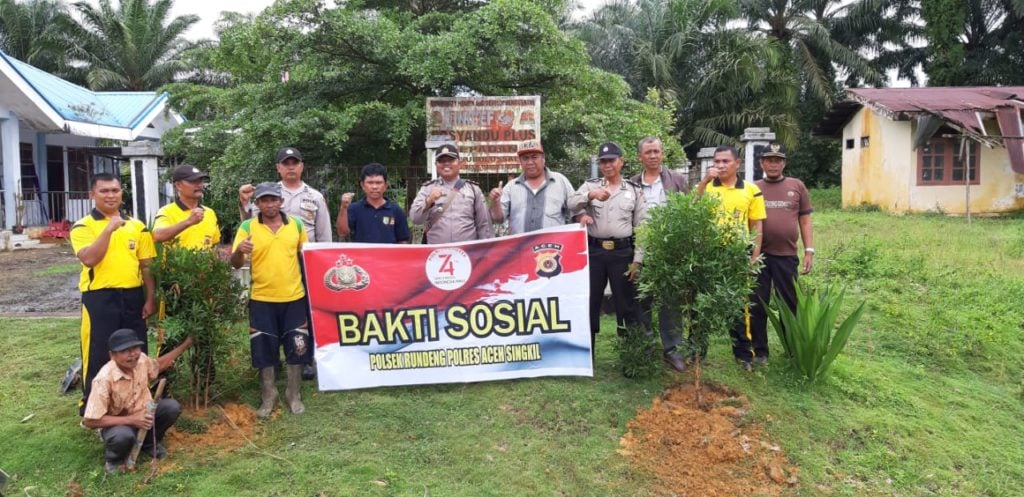 Analisaaceh.com, Subulussalam | Kepedulian terhadap kelestarian lingkungan hidup, Kapolsek Rundeng, Ipda Mulyadi,S.H,M.H beserta Personel dan masrakat Desa Sepadan laksanakan bakti sosial di dua tempat serta penghijauan dengan menanam pohon di Puskesdes dan halaman Masjid Bustanul Muhajirin, Jumat (08/11/2019).