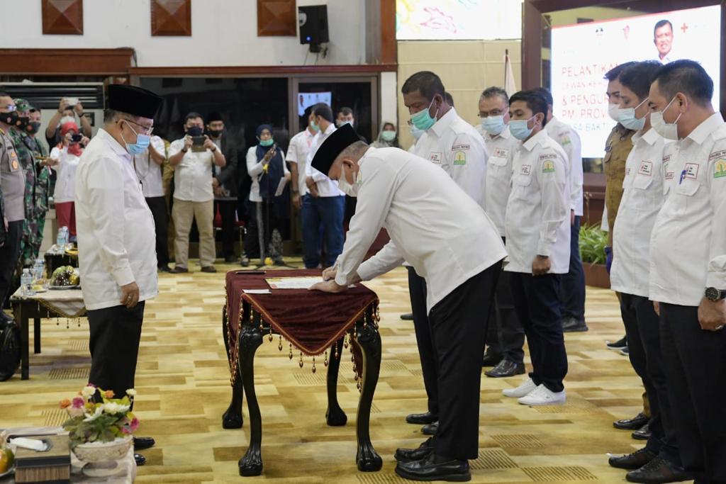 Analisaaceh.com, Banda Aceh | Ketua Umum Palang Merah Indonesia (PMI) Pusat, Muhammad Jusuf Kalla melantik Dewan Kehormatan dan Pengurus PMI Aceh Periode 2020 – 2025, di Anjong Mon Mata Pendapa Gubernur Aceh, Selasa (29/12/2020).