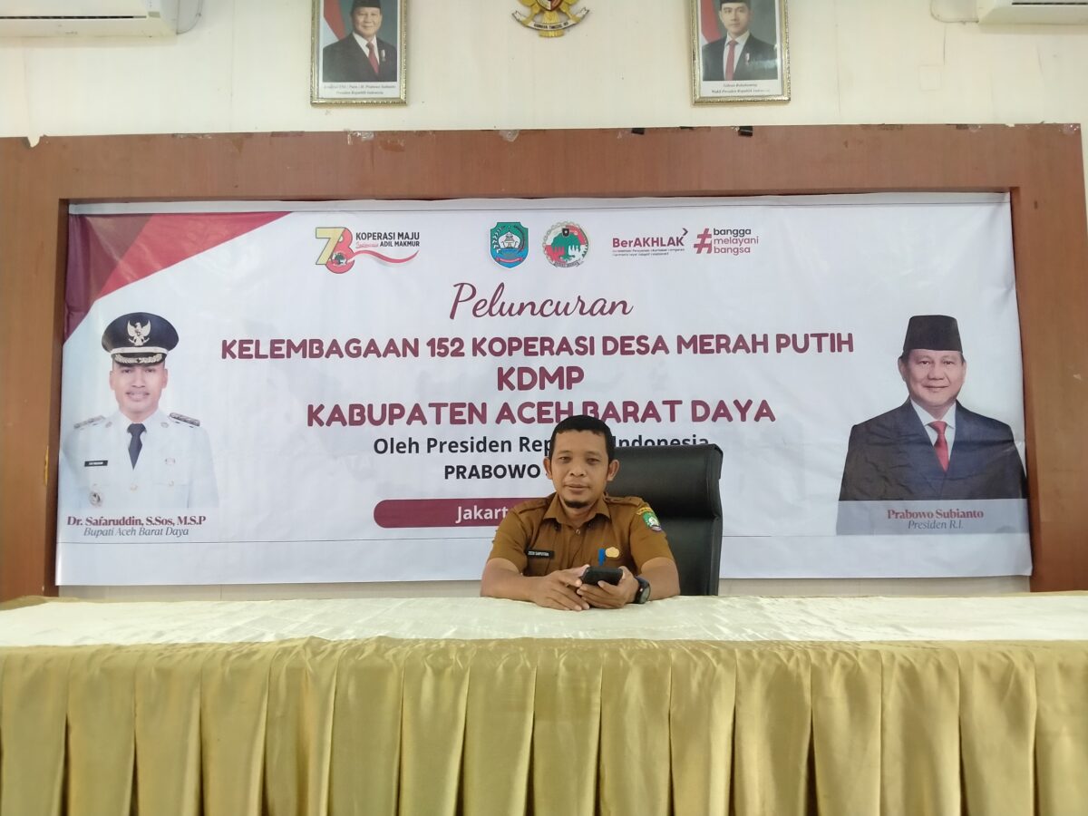 Pernyataan itu disampaikan oleh Kepala Dinas Perindagkop Abdya, Zedi Saputra usai mengikuti peresmian koperasi Merah Putih secara nasional melalui zoom di Aula Dikila Bappeda Abdya, Senin (21/7/2025).