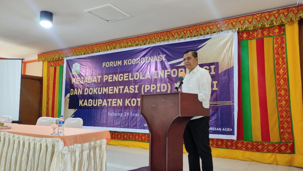 Aalisaaceh.com | Kepala Dinas Komunikasi, Informatika dan Persandian (Diskominsa) Aceh Marwan Nusuf secara resmi membuka Forum Koordinasi Pejabat Pengelola Informasi dan Dokumentasi (PPID) Kabupaten Kota se-Aceh. Forum ke-XIII ini digelar di Aula Hotel Nagoya Inn Kota Sabang, Rabu (29/6/2022).