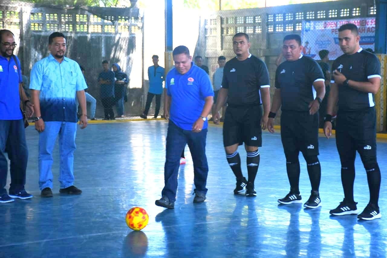 ANALISAACEH.com | Banda Aceh – Plt. Guberbernur Aceh yang diwakili oleh Kepala Dinas Pemuda dan Olahraga Aceh H. Darmansah, S.Pd., MM buka turnamen Futsal piala Gubernur Aceh di Lapangan Futsal “Fair Flay” Banda Aceh, Sabtu (26/7/2019).