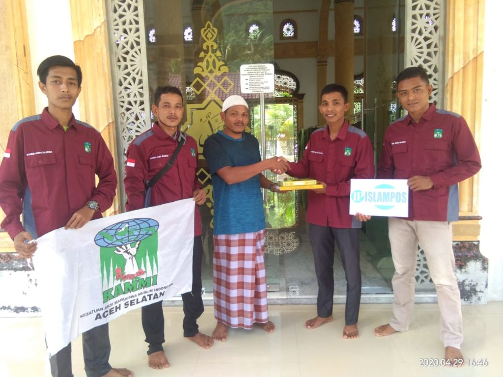 Analisaaceh.com, Tapaktuan | Kesatuan Aksi Mahasiswa Muslim Indonesia (KAMMI) Aceh Selatan bekerjasama dengan Islampos (IP) menyalurkan wakaf Al-Qur’an untuk masjid Gampong Panton Luas, Sawang, Aceh Selatan pada Rabu (29/04/2020).