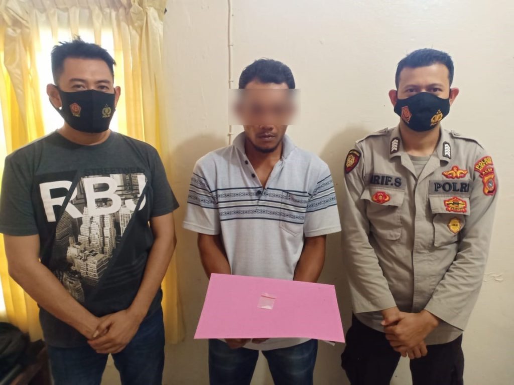 Tersangka ditangkap petugas di Gampong Alue Drien Kecamatan Lhoksukon, Aceh Utara.