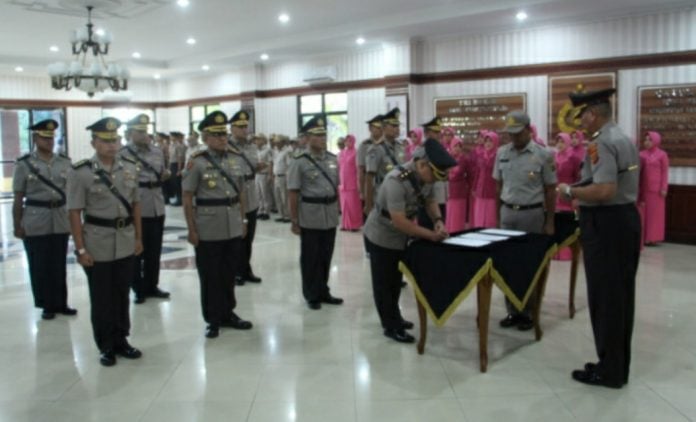 ANALISAACEH COM, Banda Aceh | Kapolda Aceh Irjen Pol. Drs. Rio S. Djambak melantik AKBP Musbagh Ni’am sebagai Kapolres Pidie Jaya di Lobi Mapolda Aceh Kamis, (12/12/2019).