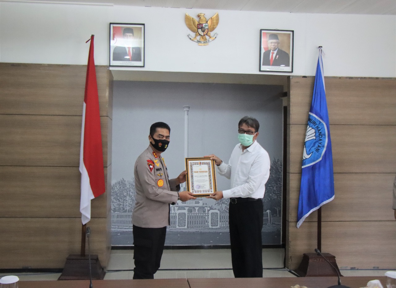 Penghargaan tersebut diberikan atas apresiasi Polda Aceh terhadap partsipasi dan kerjasama pihak Unsyiah dalam rangka rekrutmen anggota Polri yang bersih, transparan, akuntabel dan humanis (BETAH) dalam kepanitiaan terpadu anggota Polri tahun angkatan 2020.
