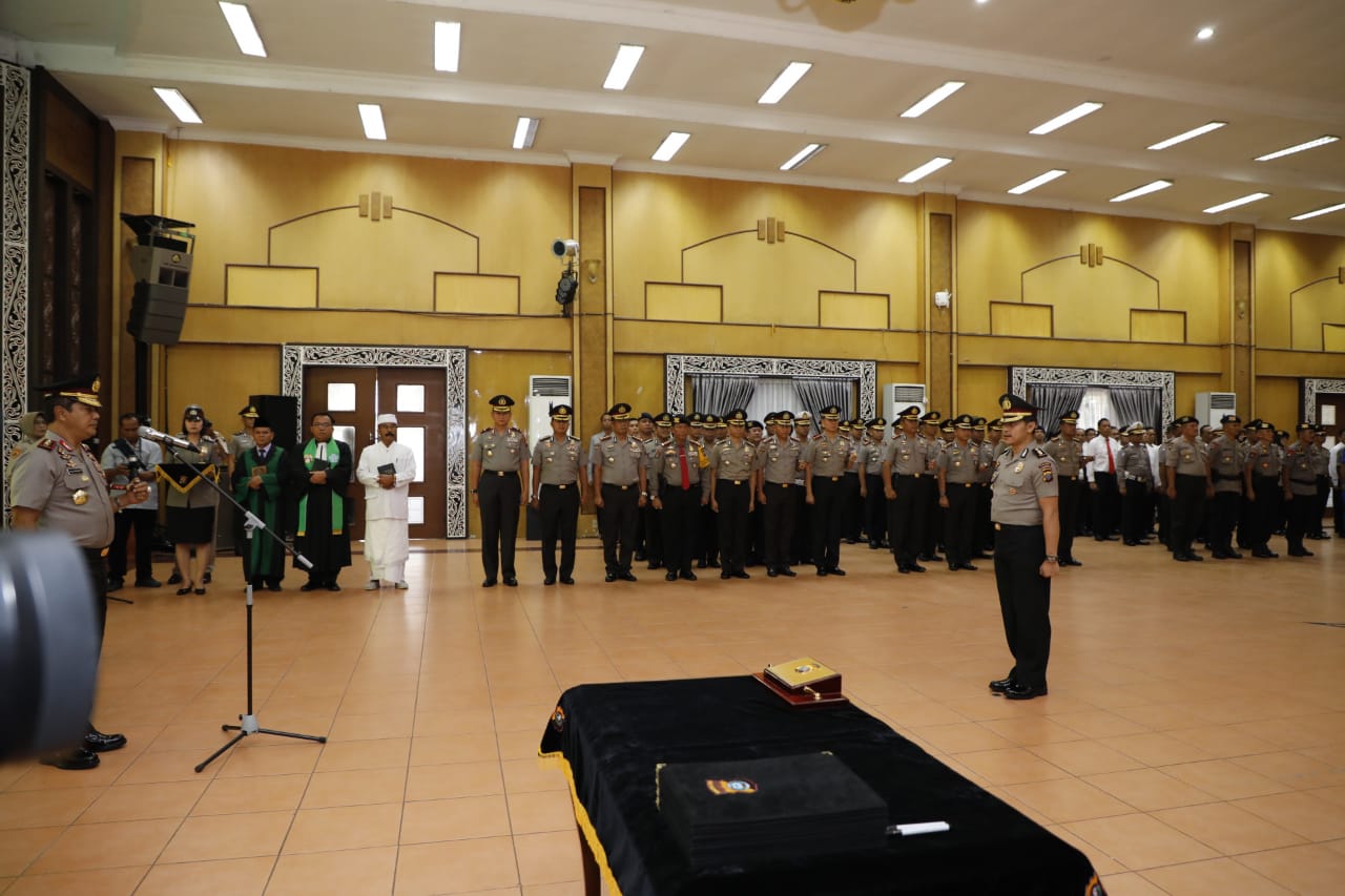Analisaaceh.com, Medan | Kapolda Sumatera Utara (Sumut), Irjen. Pol Agus Andrianto SH.MH pimpin pelaksanaan Serah Terima Jabatan (Sertijab) para Kapolres di jajaran Polda Sumut sekaligus Pengukuhan Kabidlabfor Poldasu di Aula Tribrata, Kamis (19/9/2019) Pukul 09.00 WIB.