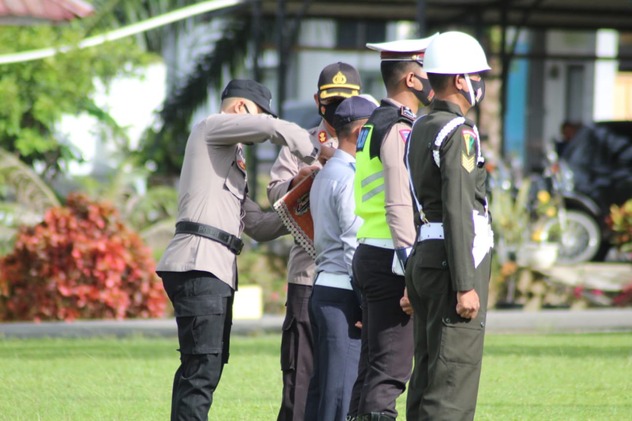 Analisaaceh.com, Blangpidie | Kepala Kepolisian Resor Aceh Barat Daya (Abdya) AKBP Muhammad Nasution,S.I.K. memimpin pelaksanaan Apel Gelar Pasukan Operasi Patuh Seulawah 2021 dalam rangka cipta kondisi Kamseltibcarlantas di tengah Pandemi Covid-19, Apel tersebut berlangsung di lapangan Mapolres setempat pada Senin (20/9/2021).