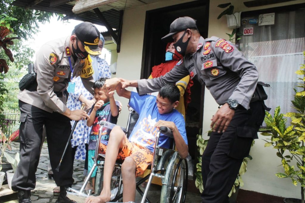 “Kami tau ada adek kita, anak kita sakit mungkin kami bisa memberikan bantuan kursi roda dan sembako seikhlas yang kami berikan. Ini bantuan kita semuanya, mudah-mudahan dapat dimanfaatkan dengan baik” kata Kapolres.