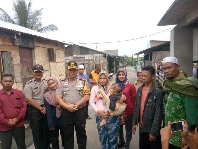 Kapolres Pelabuhan Belawan AKBP Ikhwan saat Mengunjungi balita penderita Sindrom Nefrotik di Sicanang Belawan. (Foto/Ali)