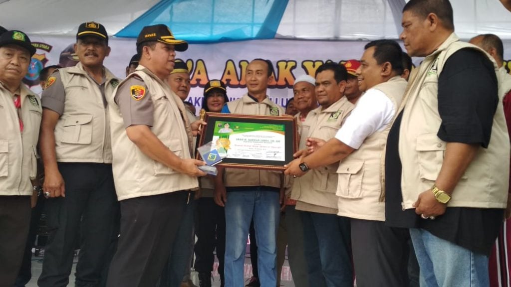 Analisaaceh.com, MEDAN | Kapolres Pelabuhan Belawan, AKBP Ikhwan didampingi Kapolsek Medan Labuhan kukuhkan Komunitas Sedekah Jum’at (KSJ) di halaman Taman Maharani Aloha Kelurahan Besar, Kecamatan Medan Labuhan, Sabtu (26/10/2019).
