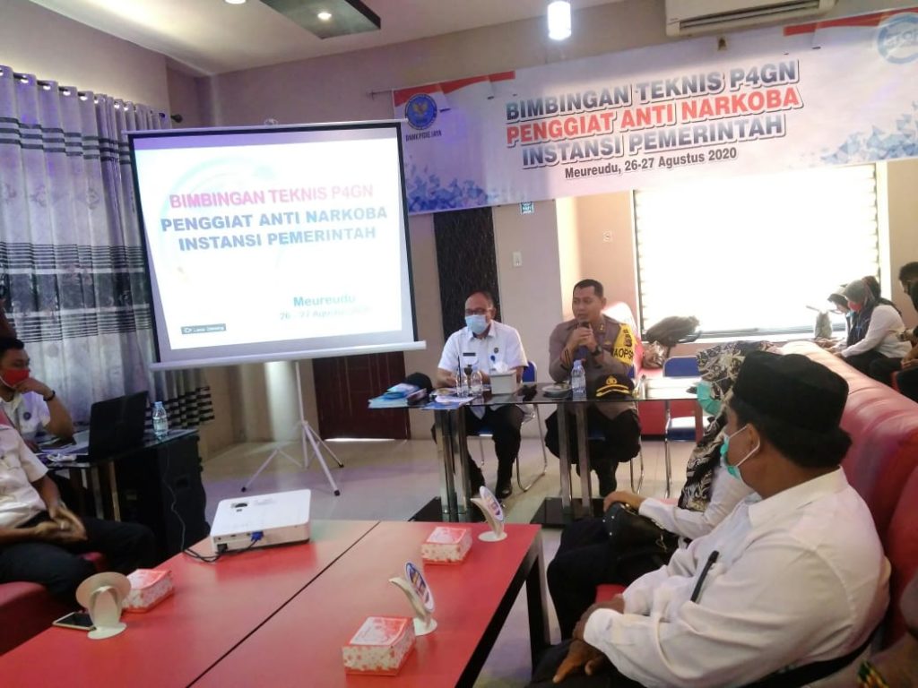 Analisaaceh.com, Meureudu | Kapolres Pidie Jaya AKBP Musbagh Niam S. Ag SH, MH memberikan penguatan dan Bimbingan Teknis (Bimtek) Program Pencegahan, Pemberantasan Penyalahgunaan Peredaran Gelap Narkoba (P4GN) pada perwakilan instansi pemerintah Kecamatan Kabupaten setempat.