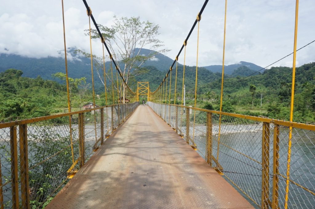 Jembatan gantung di Desa Sikundo, Kecamatan Pante Ceuremen, Kabupaten Aceh Barat. (Foto:ajnn.net)
