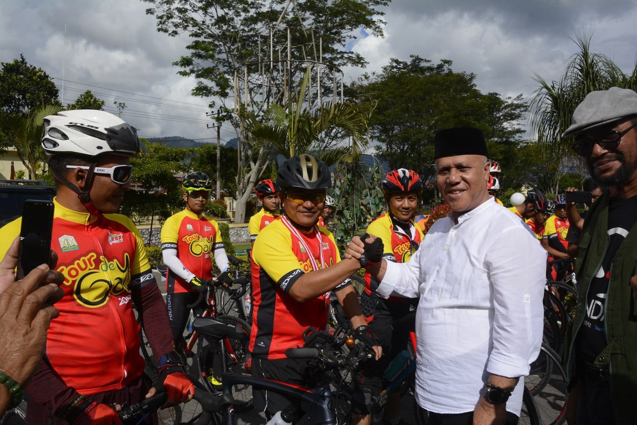 Pelepasan peserta balap sepeda road bike Tour de Gayo dengan pengangkatan bendera Star oleh Bupati Bireuen, H. Saifannur S.Sos, berlangsung di Halaman pendopo Bupati Bireuen Kota Juang menuju Finis Kota dingin dataran tinggi gayo, di Halaman Pendopo Bupati Aceh Tengah (Takengon), Sabtu (9/11/2019) Pagi.