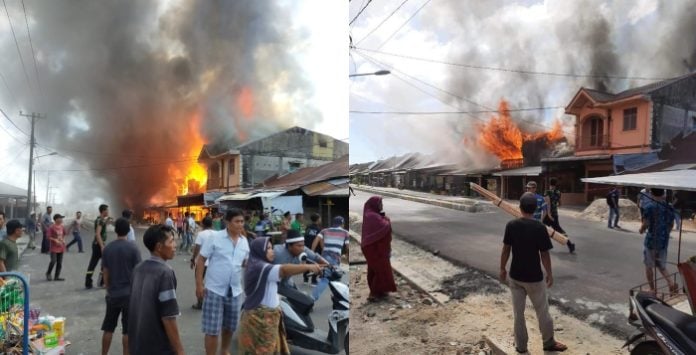 Analisaaceh.com, Aceh Singkil | Kebakaran Landa rumah penduduk di Desa Ujung, Kecamatan Singkil, Aceh Singkil, Kamis (20/2/2020). sekitar pukul 10.28 Wib, Sedikitnya belasan unit rumah warga berkontruksi kayu dan batu hangus terbakar dan rata dengan tanah.