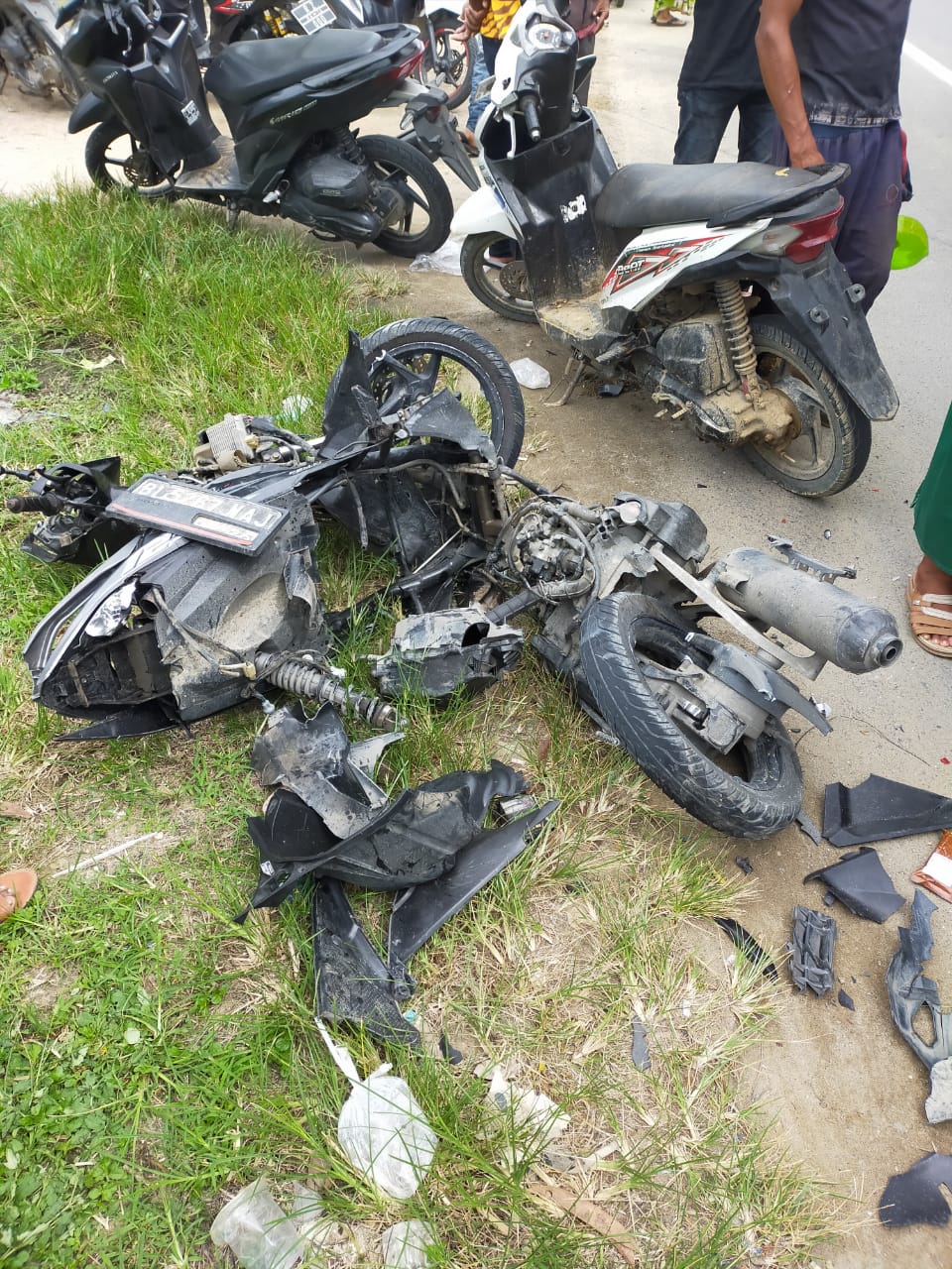Secara bersamaan sepeda motor tersebut terseret dan menghantam mobil Toyota Avanza dengan Nomor Polisi BK 1461 AAJ yang juga melaju dari arah Medan menuju arah Banda Aceh.