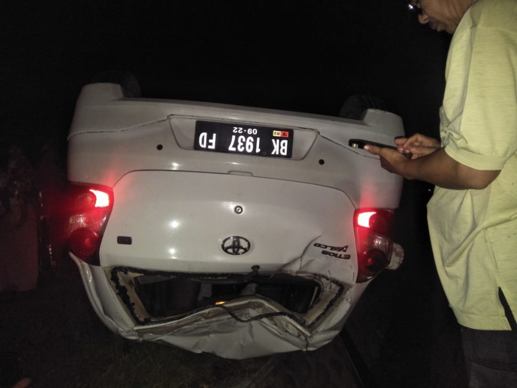 Analisaaceh.com, Lhokseumawe — Mobil jenis minibus Toyota Etios nomor polisi BK 1937 FD mengalami kecelakaan tunggal di kawasan jalan KKA – Takengon Desa Pulo Rungkom, Kecamatan Dewantara, Aceh Utara, Minggu (22/11/2020) malam.