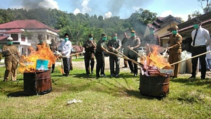 Barang bukti yang dimusnahkan merupakan perkara yang ditangani oleh Kejari Abdya periode September 2018 sampai dengan September 2019 yang berlangsung di halaman Kejari setempat. Senin, (14/10/2019).