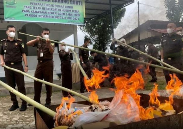 Analisaaceh.com, Blangpidie | Kejaksaan Negeri (Kejari) Aceh Barat Daya (Abdya) melakukan pemusnahan sebanyak 48 item barang bukti dari 19 perkara yang telah berkekuatan hukum tetap (Inkracht) pada Selasa (6/7/2021).