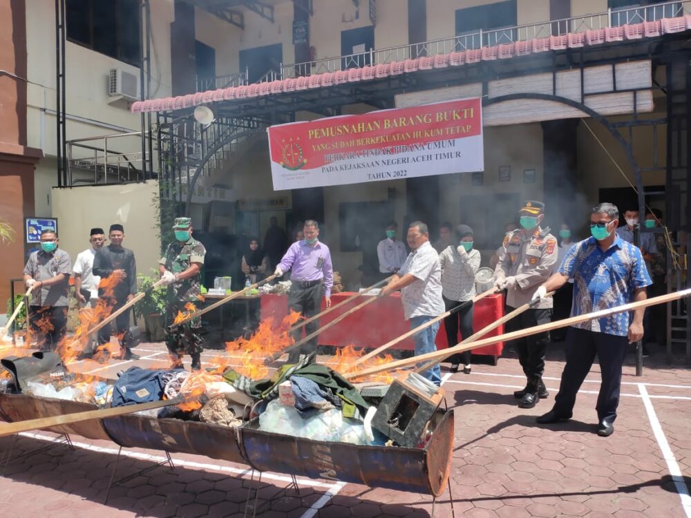 Kejari Aceh Timur memusnahkan barang bukti perkara tindak pidana, Jum'at (30/9/2022)