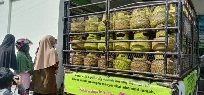 Penyidakan pangkalan gas LPG 3 Kg di T. Umar Simpang Blower Kecamatan Suka Ramai. Foto: Naszadayuna/Analisaaceh.com