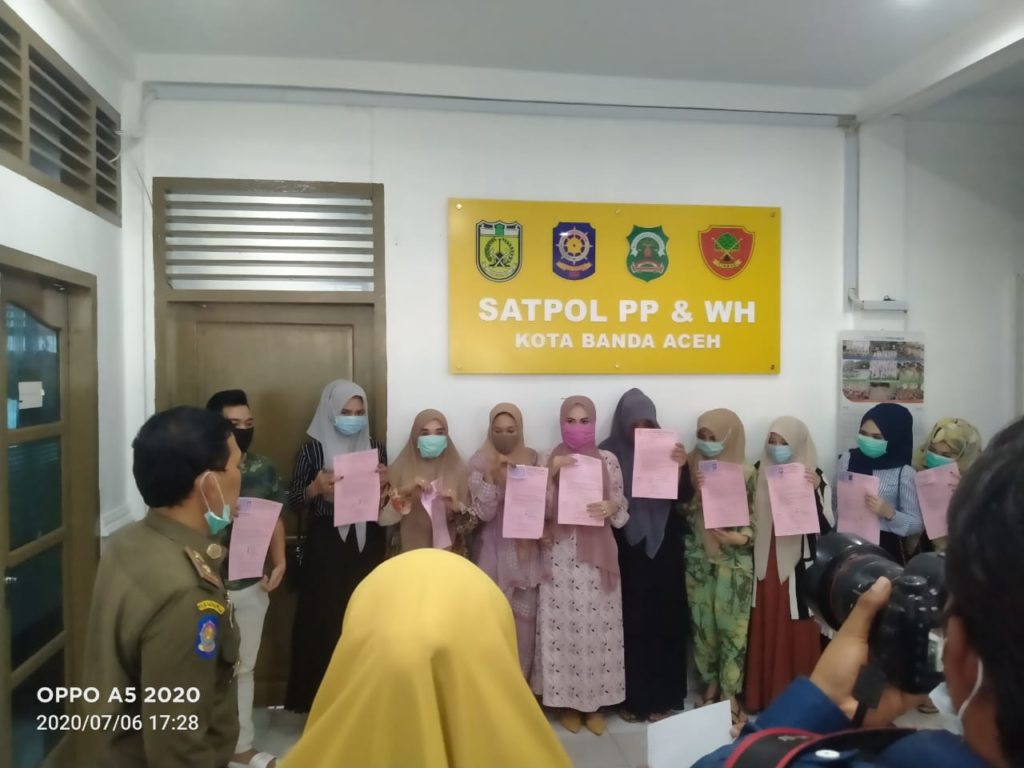 Analisaaceh.com, Banda Aceh | Kelompok perempuan bersepeda (Gowes) yang berpakaian ketat serta tidak memakai jilbab atau melanggar syari’at saat bersepada pada Minggu (5/7) diamankan oleh Satuan Polisi Pamong Praja dan Wilayatul Hisbah (Satpol PP dan WH) Kota Banda Aceh.