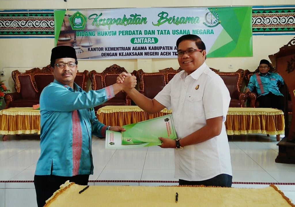 Analisaaceh.com, Takengon | Kementerian Agama (Kemenag) Kabupaten Aceh Tengah teken Memorandum of Understanding (MoU) bidang hukum perdata dan tata usaha Negara dengan Kejaksaan Negeri kabupaten setempat.