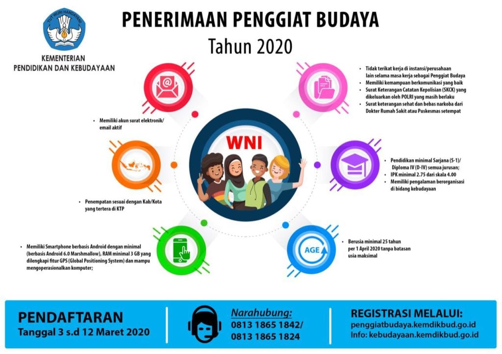 Informasi tersebut surat Pengumuman Nomor : 2.183 /F1/KP/2020 Tentang Penerimaan Penggiat Budaya Tahun 2020 di Lingkungan Direktorat Jenderal Kebudayaan Kementerian Pendidikan dan Kebudayaan.