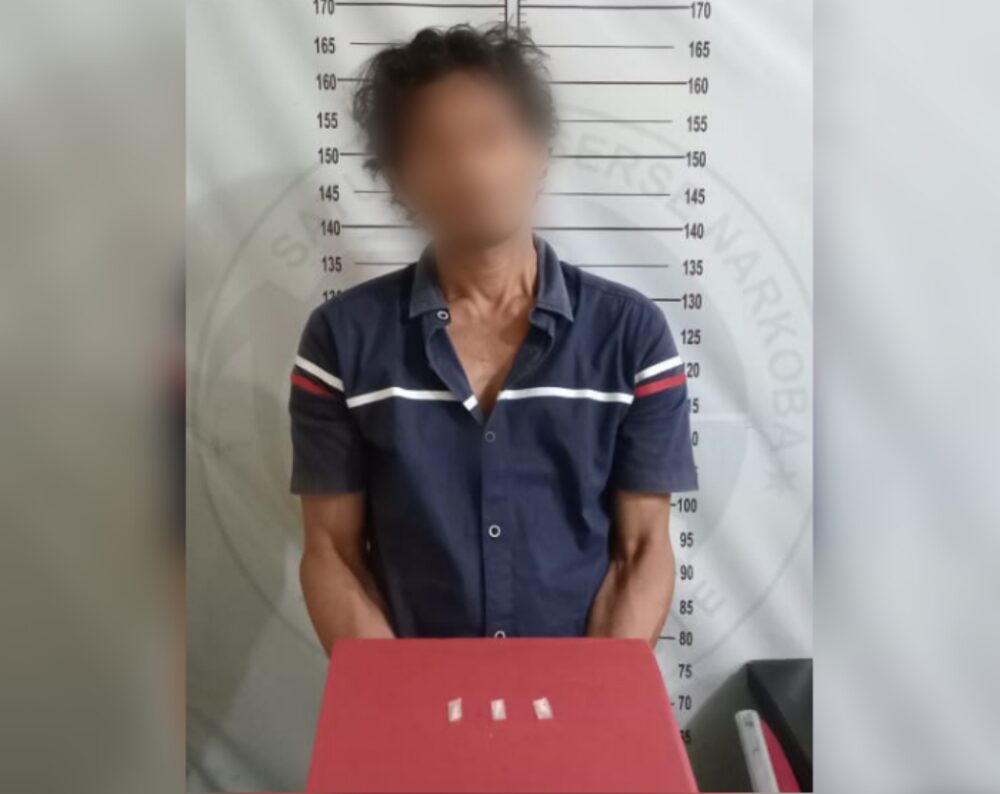 Saat dilakukan pengeladahan, sambung Kasat, petugas berhasil menemukan tiga paket narkotika jenis sabu yang terbungkus dengan kertas bening di atas tikar dalam kamar tidur tersangka.
