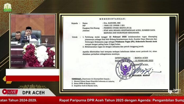 Analisaaceh.com, Banda Aceh | Ketua Dewan Perwakilan Rakyat (DPR) Aceh, Zulfadli, dengan tegas menyatakan bahwa Surat Keputusan (SK) pengangkatan Pelaksana Tugas (Plt) Sekda Aceh, Alhudri, bukan dari Badan Kepegawaian Aceh (BKA).