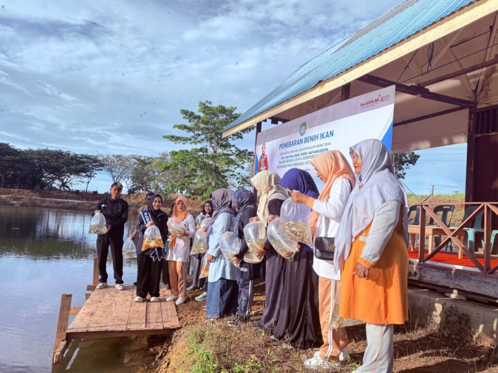 Anlisaaceh.com, Blangpidie | Sebanyak 3.500 lebih benih ikan ditebarkan di Kolam komplek Kantor Bupati Aceh Barat Daya (Abdya), Jum’at (6/2/2026). Kegiatan ini dilakukan dalam rangka mendukung program ketahanan pangan serta menghidupkan kembali kolam yang telah lama vakum.