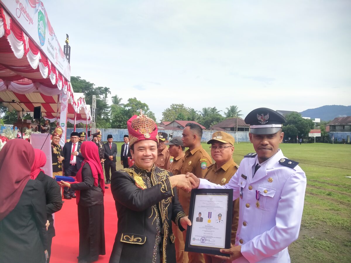 Piagam penghargaan Desa Mandiri diserahkan langsung oleh Pj Bupati Abdya, Sunawardi, di Lapangan Persada, Gampong Keude Siblah, Kecamatan Blangpidie, pada Sabtu (17/8/2024).