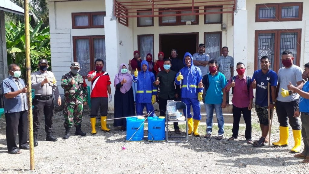 “Penyemprotan sudah kita lakukan yang sebelumnya relawan telah diajarkan cara membuat Desinfectan oleh Kepala Puskesmas Ladang Tuha. Saat penyemprotan kita juga mengundang Muspika dan relawan Puskesmas,” pungkas Diwan.