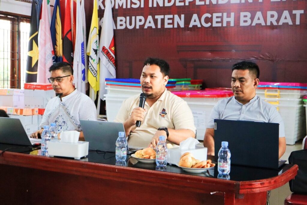 Ketua divisi Teknis dan Penyelenggaraan KIP Abdya, Deri Sudarma (tengah). Foto:Ist