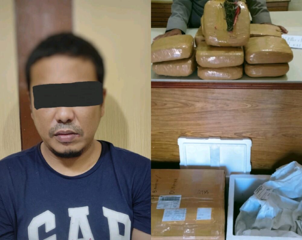 “Pasca pengiriman ganja kering melalui bandara SIM Aceh Besar pada hari Jumat (28/4/2022) silam, kami terus melakukan pencarian terhadap keberadaan pelaku, sehingga berhasil ditangkap di rumahnya,” ucap Kasatresnarkoba.