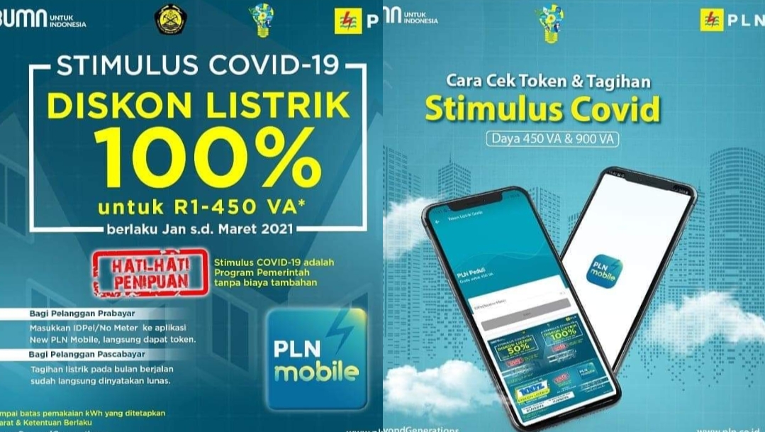 1. Diskon listrik 100% diberikan kepada pelanggan pascabayar golongan rumah tangga daya 450 VA, bisnis kecil daya 450 VA, dan industri kecil daya 450 VA. Adapun untuk pelanggan prabayar, setiap bulannya diberikan token diskon 100 % yang besarannya sama seperti sebelumnya.