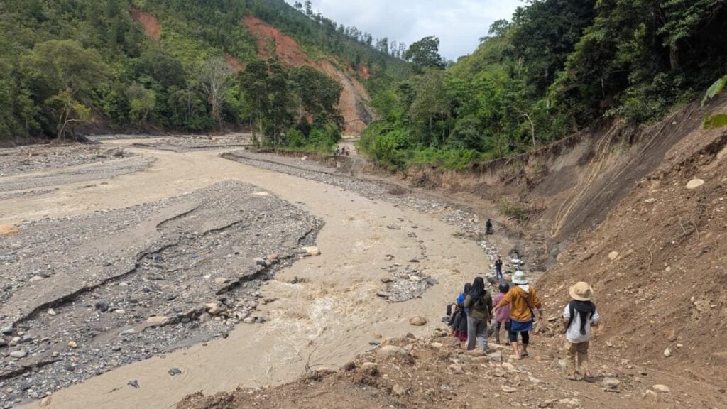 Relawan yang masuk ke wilayah terdampak pun harus berjalan kaki, naik-turun bukit, dan menyeberangi sungai karena sejumlah titik masih terputus.