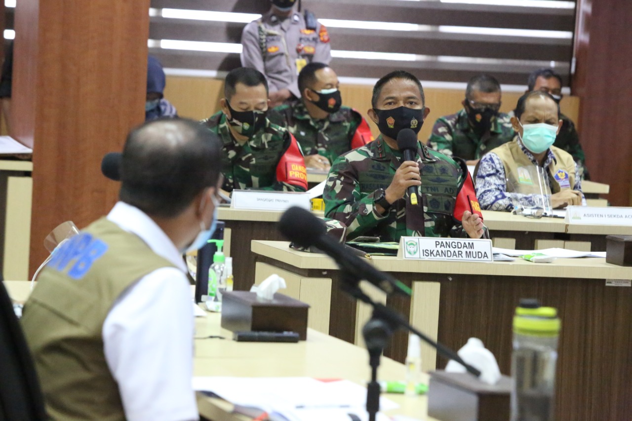 Pangdam IM menyampaikan beberapa langkah-langkah yang telah dilakukan Kodam IM dalam hal menyikapi perkembangan kasus Covid-19 di Aceh.